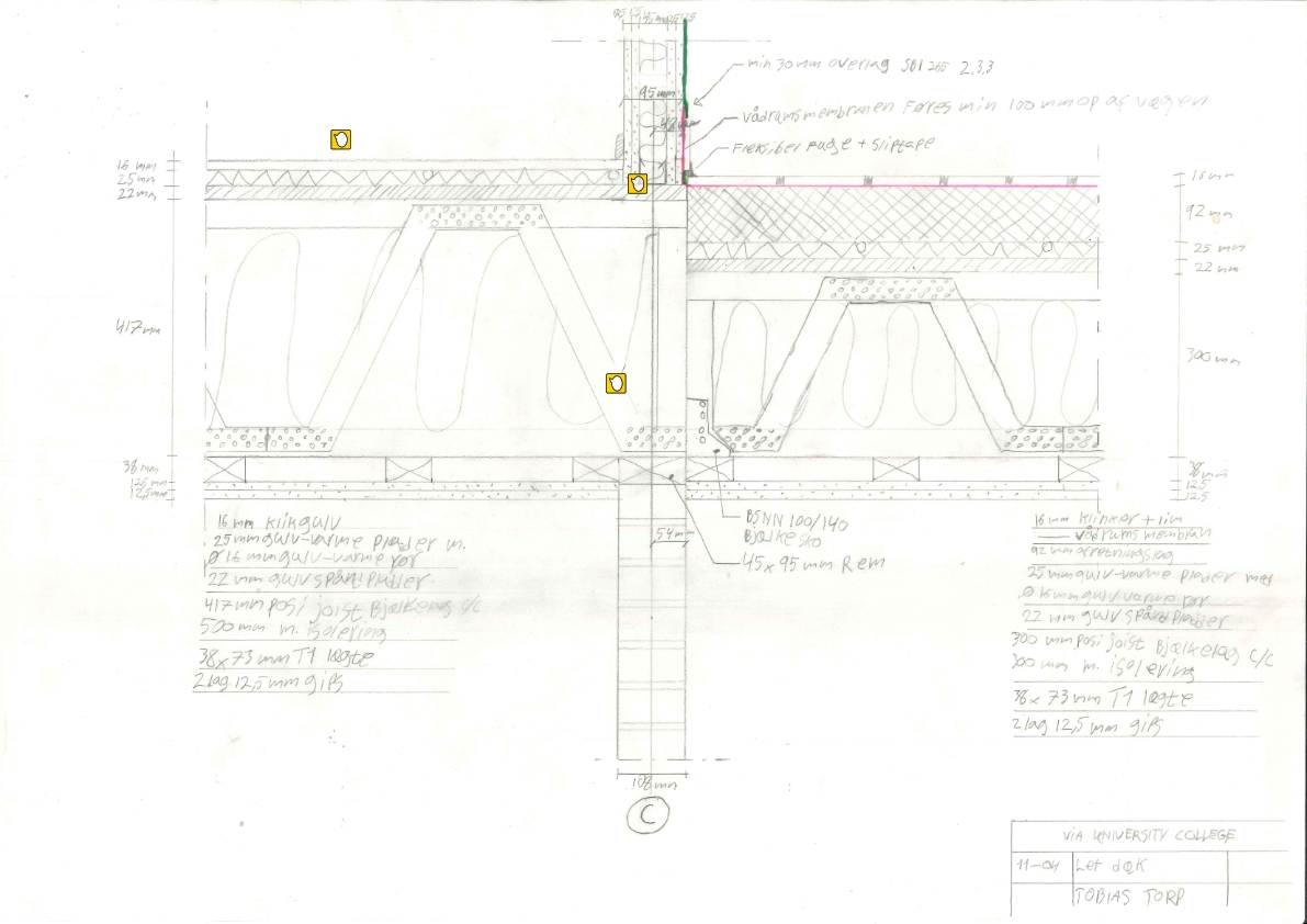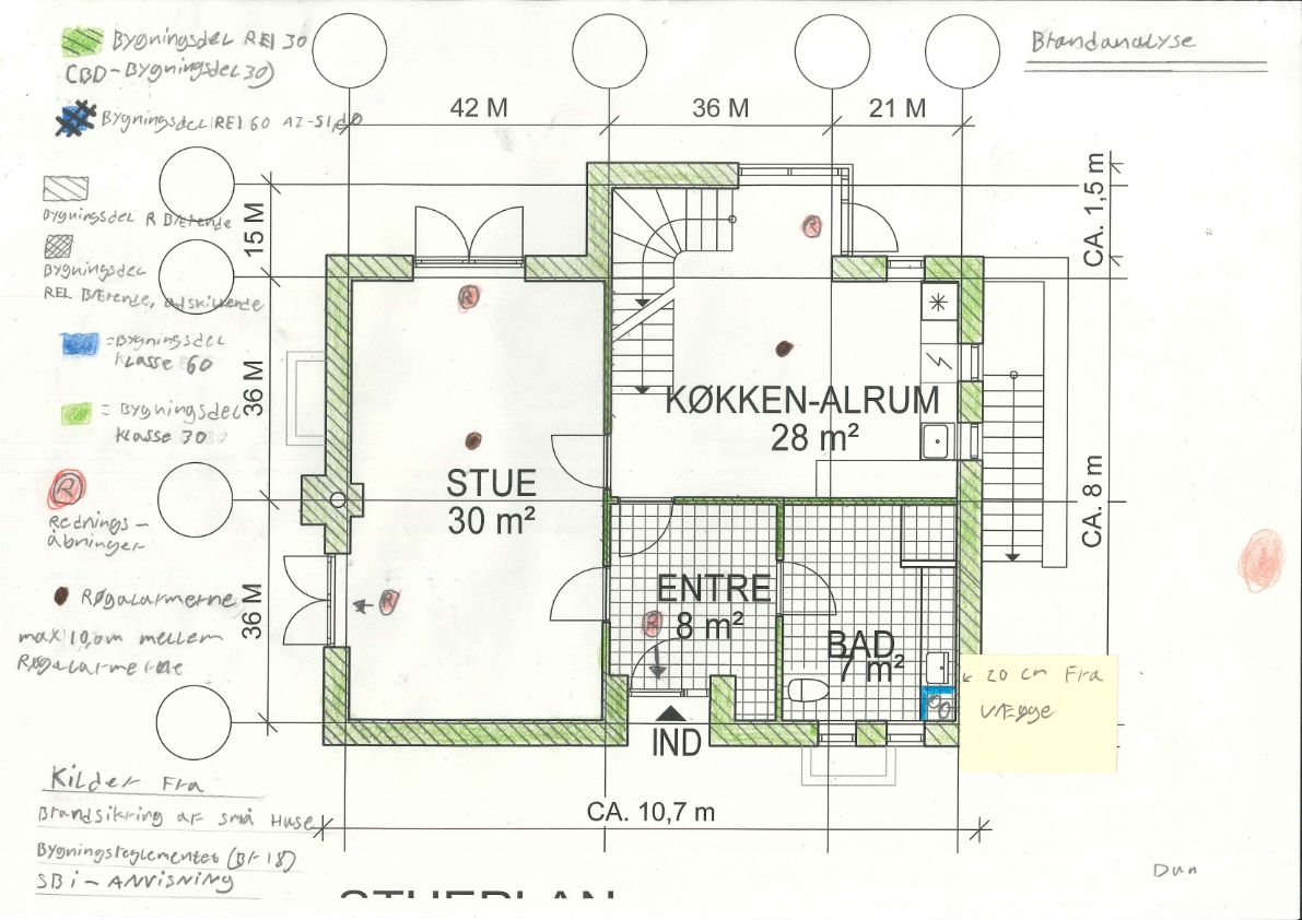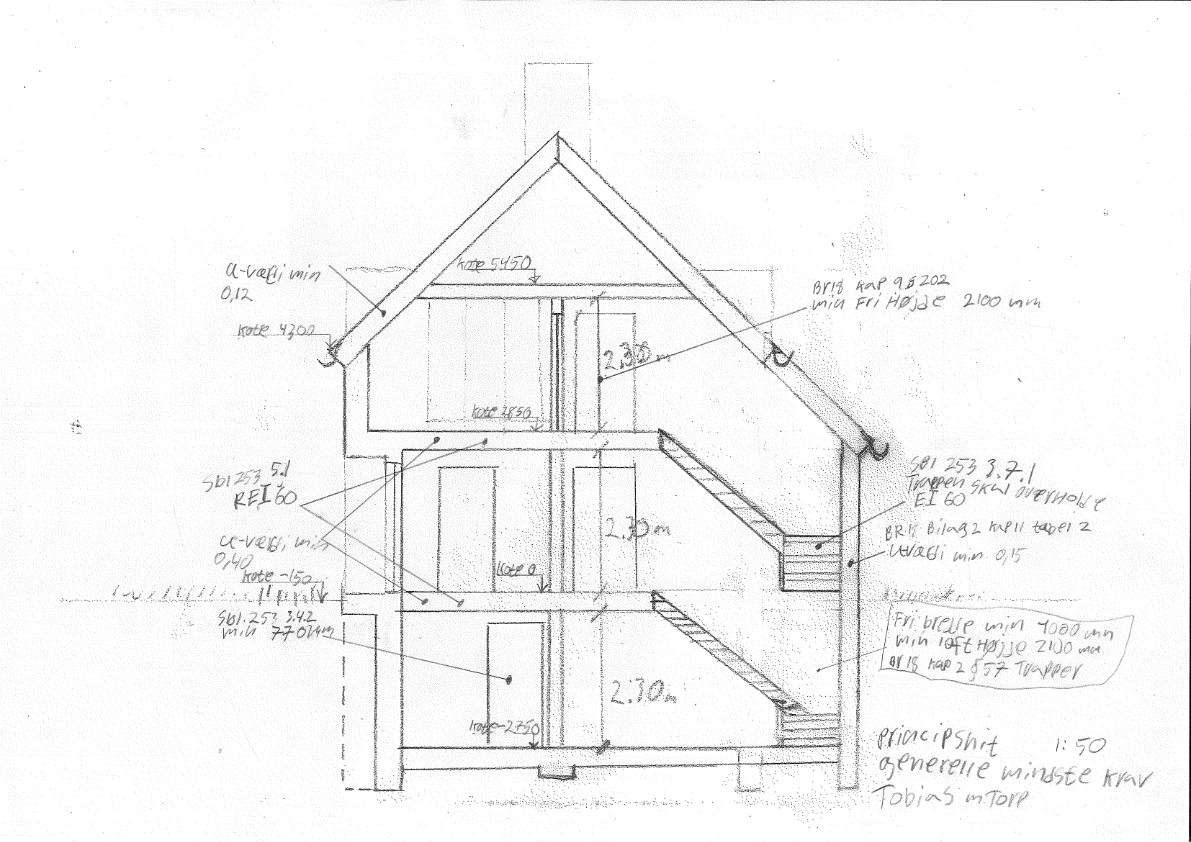 Vi startede med at lave en brandplan, statisk analyse og et u-værdisnit, for at opstille de nødvendige funktionskrav til projektforslagsfasen.