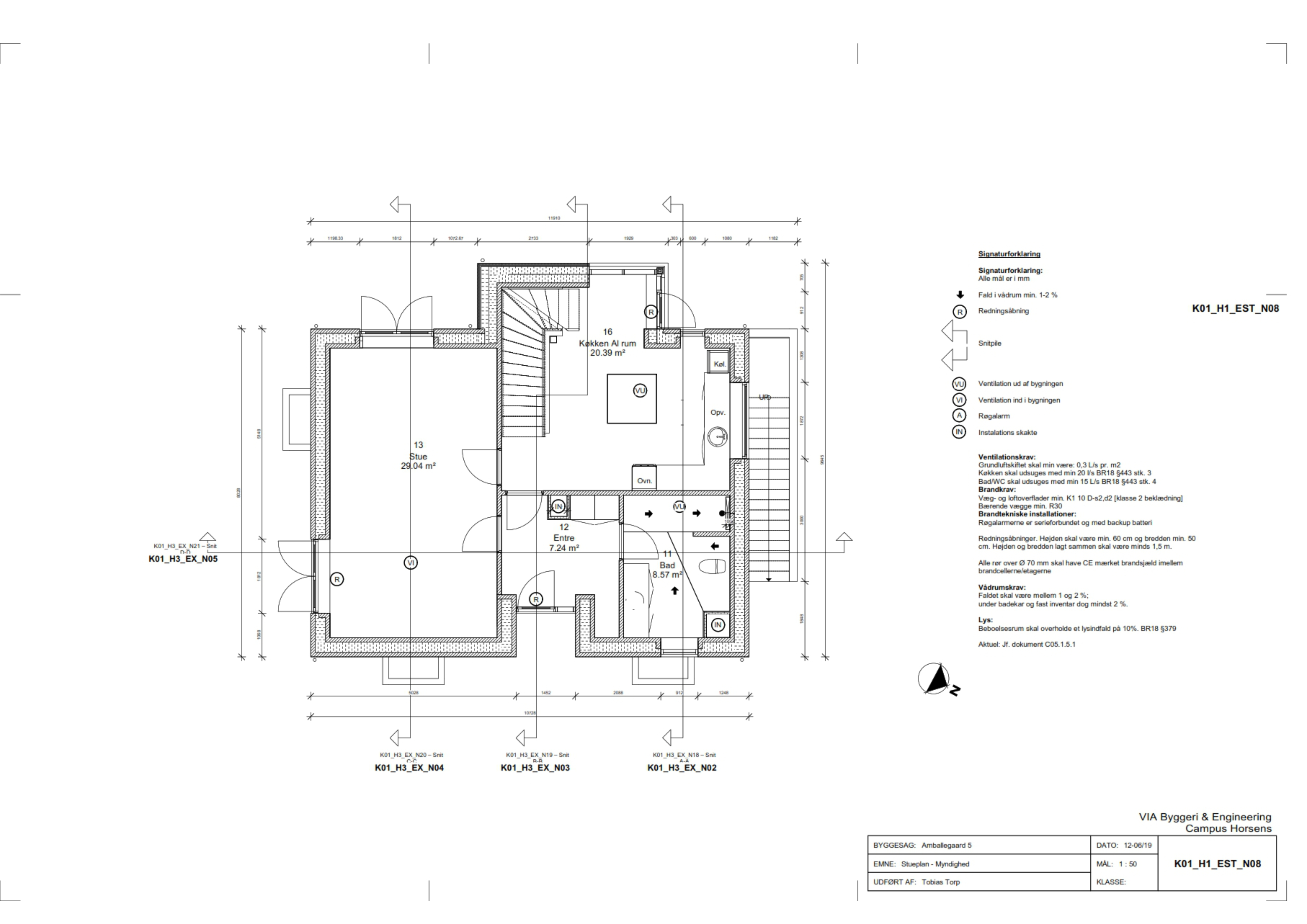I myndighedsprojektet blev der lavet et fuldt myndighedsset med planer snit brandanalyser med mere.